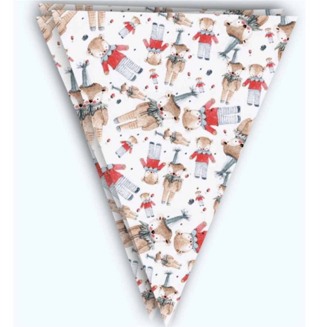 Contiene: 12 banderines,1,80 mts. de hilo encerado rojo y blanco.