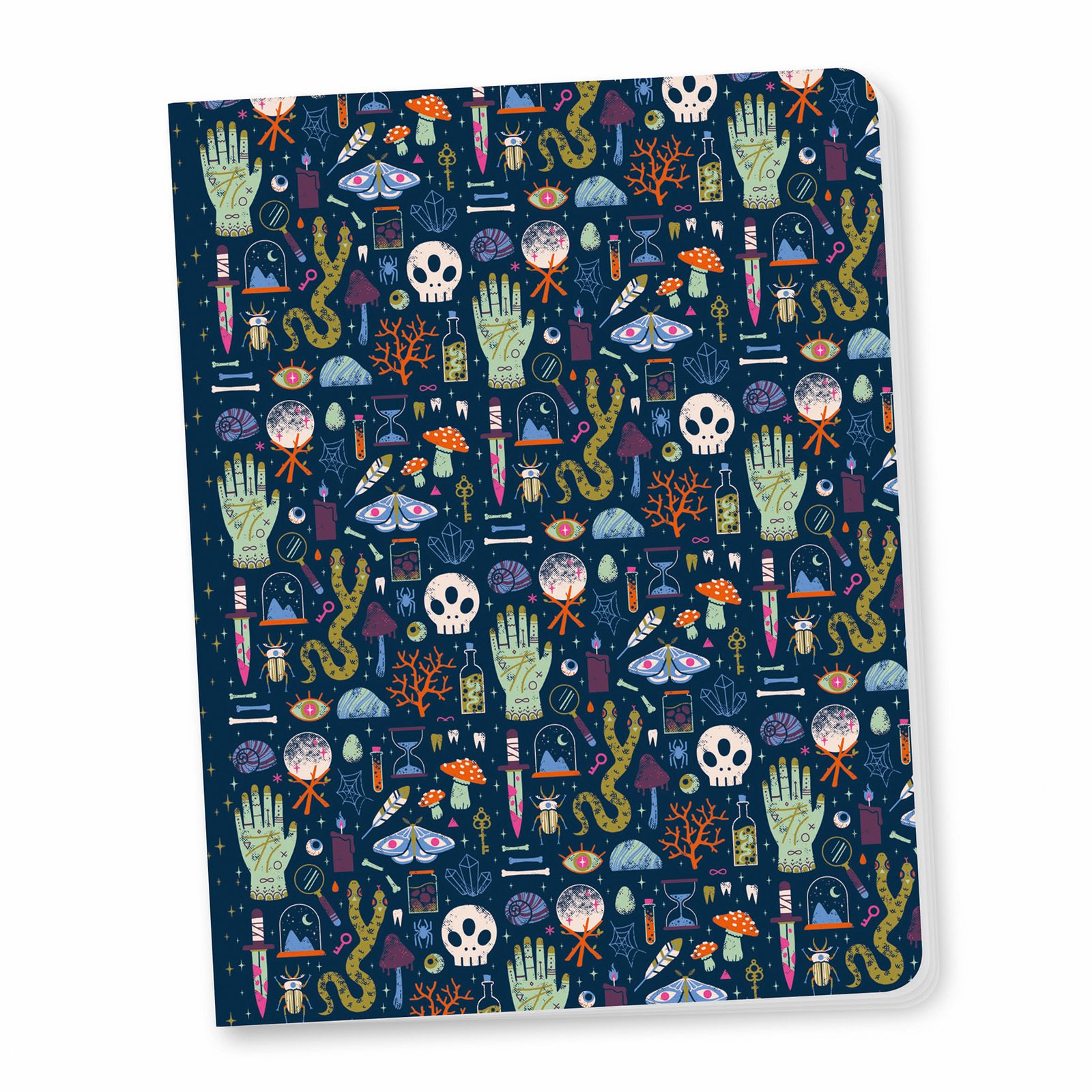 La portada presenta una ilustración con efecto metálico de magia y rituales.