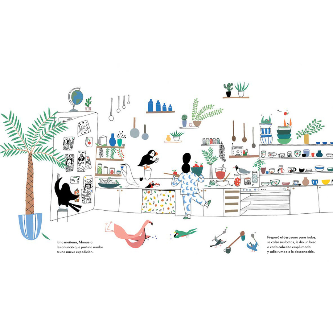 Manuela es una gran exploradora. Vive con sus doce pájaros, de quienes se hizo amiga durante sus numerosas expediciones. Juntos llevan una vida muy tranquila, hasta que un día los pájaros deciden que ha llegado el momento de ir en búsqueda de sus propias aventuras. Vivirán muchas emociones y pasarán algún que otro contratiempo… ¡pero el viaje no los va a decepcionar!