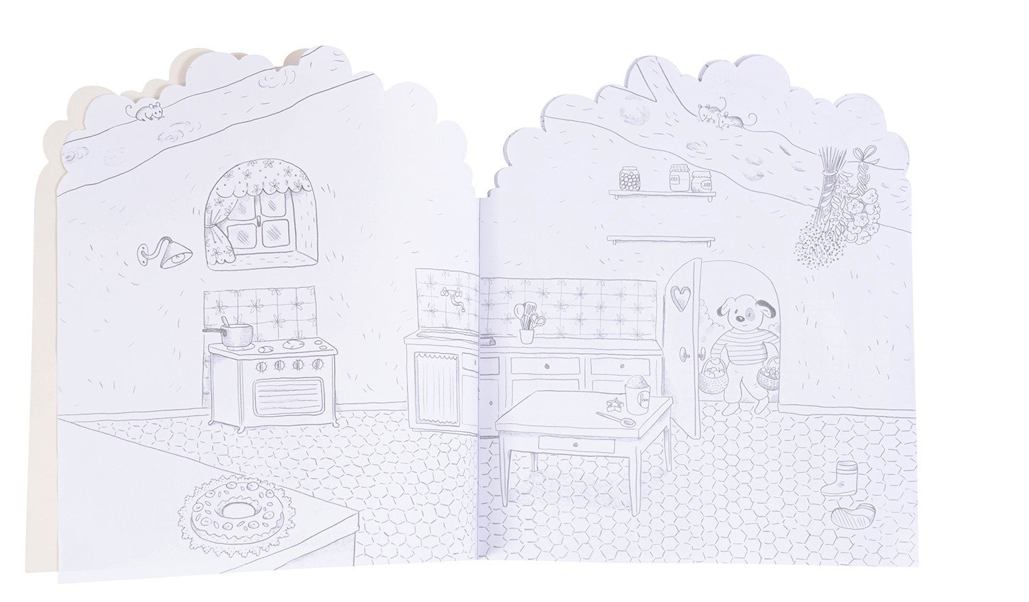 Libro para colorear con 160 stickers que muestran a los personajes de la Gran Familia en sus tareas diarias.
