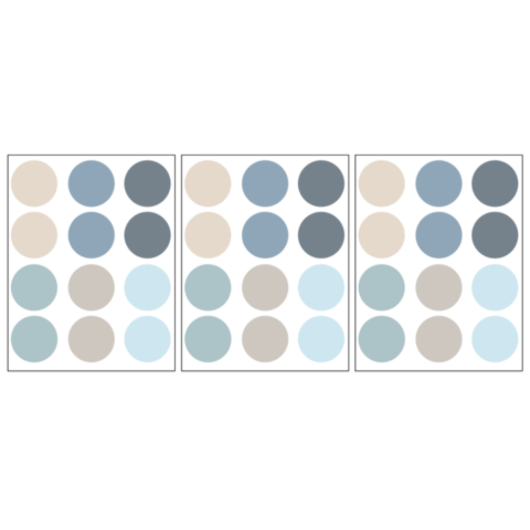 Dots multicolores de 4 cm cada uno, vienen 3 planchas de 15 x 20 cm con 12 dots cada una. 36 dots en total.